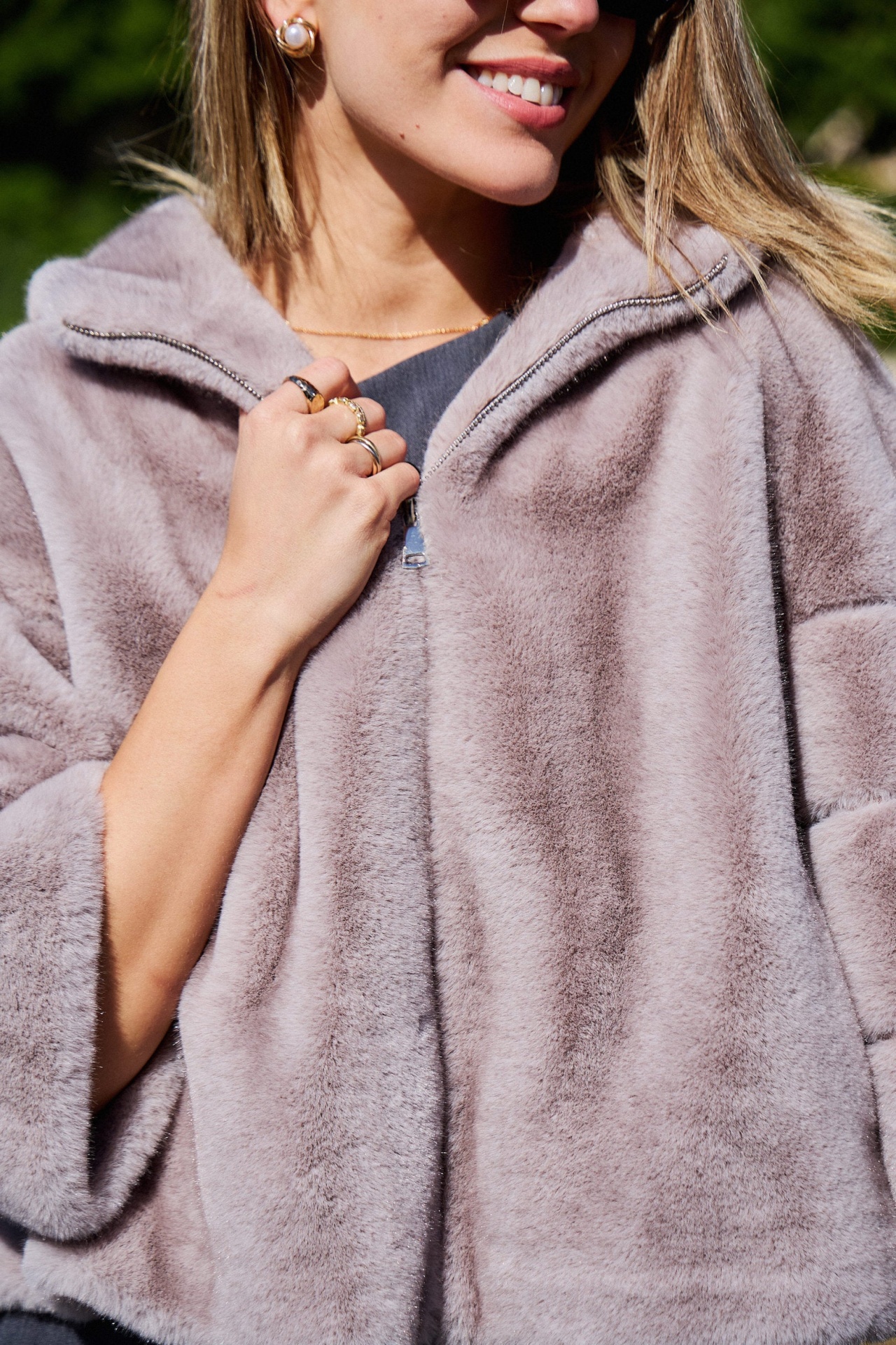 ANGELICA - Casaco com capuz de pele sintética